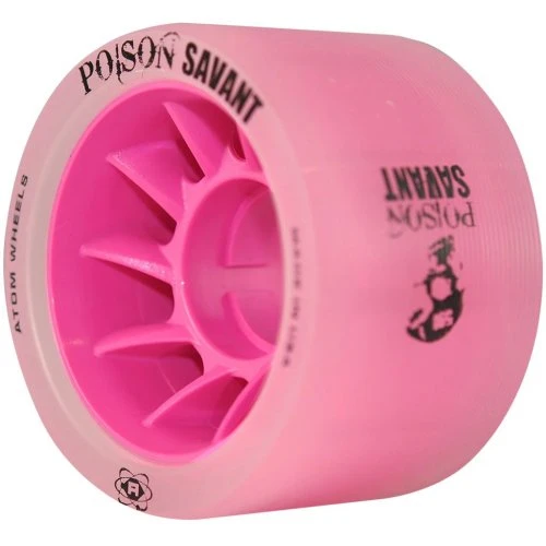 What could possibly make Atom’s Poison, one of the top-performing wheels in the industry any better?… Our exciting new Savant core of course! First we start with Savant, featuring an oversized core with moulded lip. The oversized core not only reduces weight but increases the overall roll (speed). With the increased speed, the moulded lip plays a big role in ensuring the grip characteristics remain. Then we wrapped that puppy in our famous Poison urethane. Poison provides awesome grip without that ‘sluggish marshmallow’ feeling which allows for more roll. Poison Savant is perfect for outdoor tracks, slick sports courts, bank tracks and dirty wood floors.Â