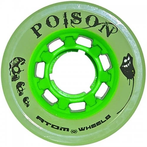 Never worry about sliding again! Atom noticed that many derby skaters use outdoor wheels which are normally narrow and way too sluggish. To answer your needs they’ve created Poison. Now you can have the best of all worlds: grip, roll AND amazing lateral push. Poison provides awesome grip without that ‘sluggish marshmallow’ feeling which allows for more roll. Featuring super sick graphics on a bright green core, Poison will blow your competitors off the derby track!