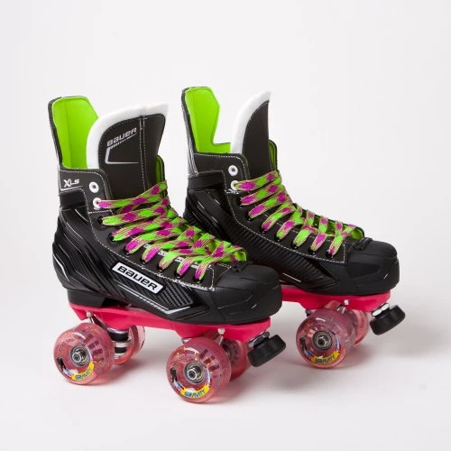 Bauer X-LS Quad Roller Skates fitted with the super tough Sure-Grip Rock Plate and wheels & bearings of your choice!