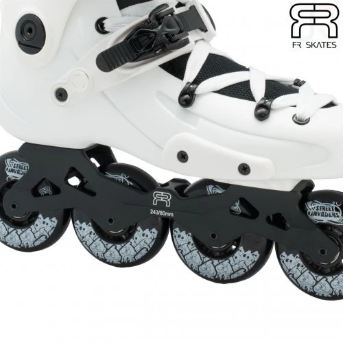 The wheel of choice for freeride skaters everywhere is the FR Street Invader II Wheels, and the FR 1 80 skate features colour co-ordinating 80mm/84a wheels.